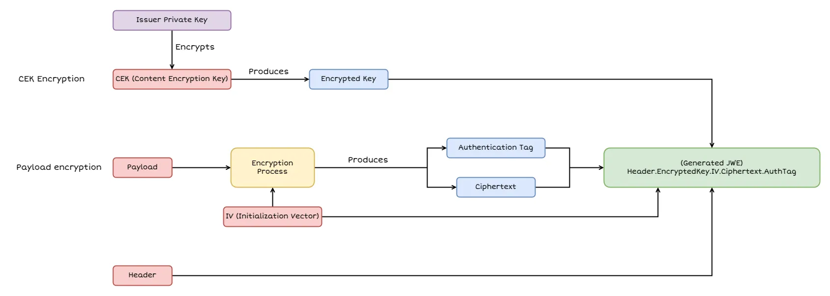 - Privacy-Focused Authentication Tokens: Unlike JWS, which keeps token claims readable, JWE encrypts the payload, preventing unauthorized disclosure of sensitive claims (e.g., roles, permissions).