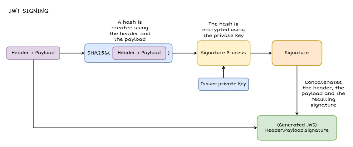 In the context of JWT, whenever you’re signing the token, you’re basically making a JWS. The JWS specification outlines how to take a header, a payload, and a chosen cryptographic algorithm, and then produce a signature.